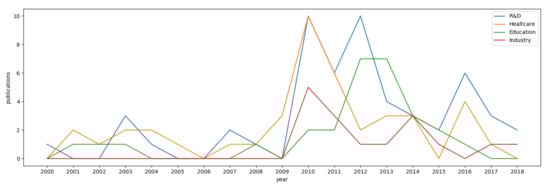 | Health care | EU | [10,11,74,75,76,77,78,79,80,81,82,83,84,85,86,87] | Psychology, Laparoscopic, Phobias, Surgery. | Increase |