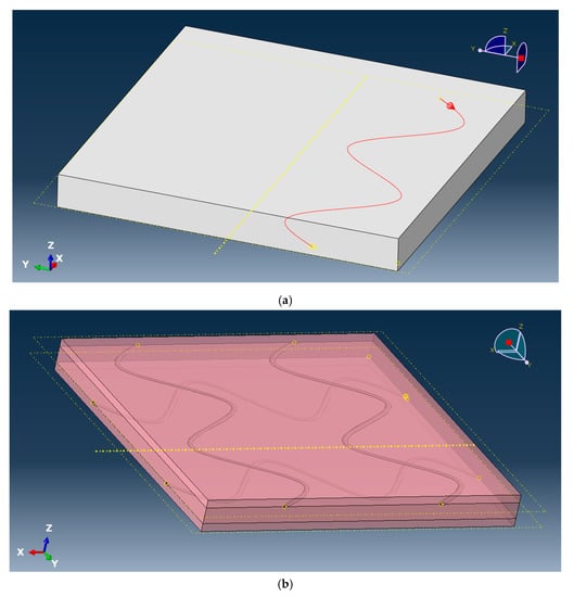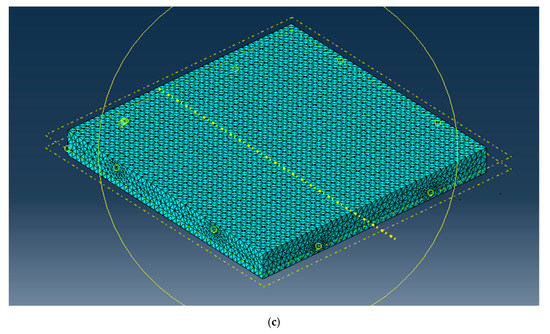 Design of a coconut-inspired plate model with microchannels. (a) Defining a path for a microchannel; (b) A microchannel network; (c) A finite element model.