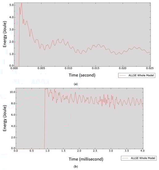 Comparison of strain energy during a pendulum impact test. (a) A regular plate; (b) A coconut-inspired plate.