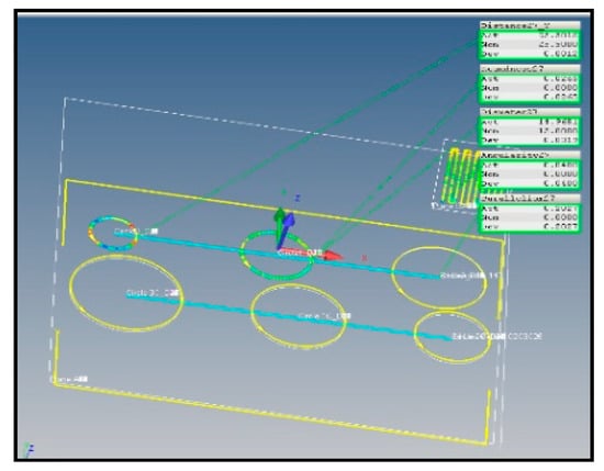 In the paper of [1], the authors mention that, according to the ISO12181-1, roundness tolerance is defined as the zone between two concentric circles which enclose the circular profile. Besides, it limits the roundness deviations, which is the distance between two concentric circles touching and enclosing the extracted circle (i.e., measured points) at the minimum radial distance from each other. The other two variables were diameter and distance between the centers of two circumferences. The software CALYPSO from ZEISS (Figure 2) was used for data evaluation.