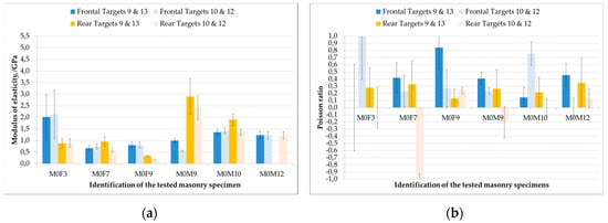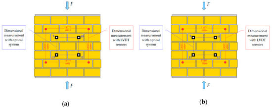 As shown in Figure 4, the targets positioning on the specimen allows determining horizontal and vertical deformations, including bricks and mortar joints, making the deformation measurement representative of the overall deformation of the masonry specimen.
