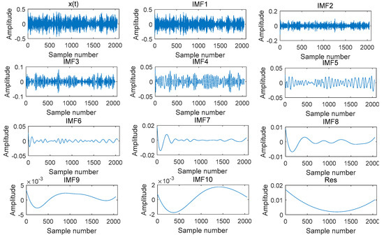 (1) Assuming that is the signal to be analyzed, a Gaussian white noise with an amplitude coefficient of is added to it, and the number of iterations is set to times, that is