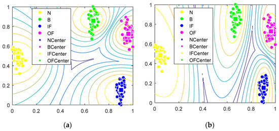 In the formula, is the value of membership degree. The nearer the value of PC is to 1 and the nearer the values of CE and XB are to 0, the better the clustering results [39,40,41].