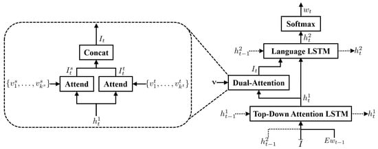- Pedersoli, M.; Lucas, T.; Schmid, C.; Verbeek, J. Areas of attention for image captioning. In Proceedings of the IEEE International Conference on Computer Vision, Venice, Italy, 22–29 October 2017; pp. 1242–1250. [Google Scholar]