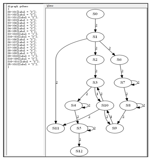 To implement the major functions of the network reception and dispatch module, designers performed detailed design and wrote a software design document. According to the software design document, the workflow of the network reception and dispatch module can be abstracted into the following 13 services. The name and description of each service are shown in Table A2. To ease the modelling process, we numbered these services from 0 to 12.