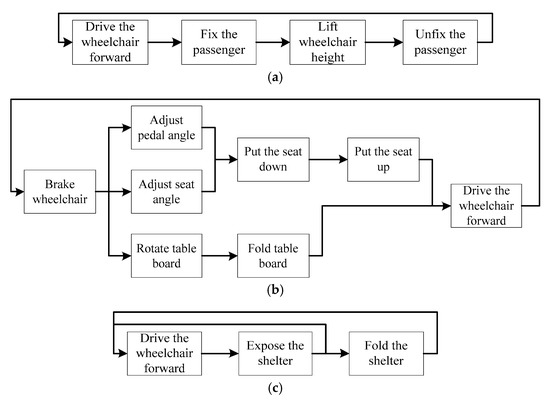 Therefore, two final concepts can be formed for the wheelchair based on two segments formed in Figure 11, and the first concept has three states S1, S2, and S4. Its function chain is shown in Figure 12.