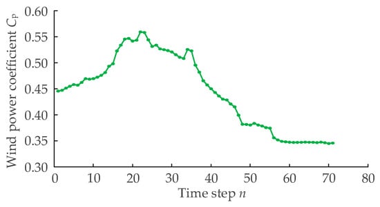The operating health of wind turbines can also be evaluated by the real-time wind energy utilization efficiency. Because wind speeds can change rapidly and the mechanical energy stored on the wind wheel of the wind turbine can only change slowly due to the inertia of the wind wheel, the value of the transient wind power coefficient is inconsistent with the actual situation. As shown in Figure 5, the minimum value was 0.18, and the maximum value was 1.95, which was much larger than the theoretical maximum value of 0.593 of the wind power coefficient.