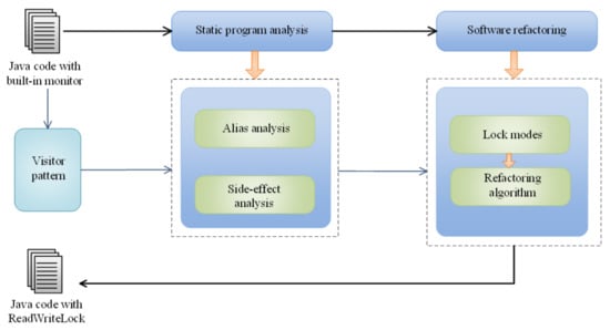 - Schafer, M.; Sridharan, M.; Dolby, J.; Tip, F. Refactoring Java programs for flexible locking. In Proceedings of the 2011 33rd International Conference on Software Engineering (ICSE), Honolulu, HI, USA, 21–28 May 2011; pp. 71–80. [Google Scholar]