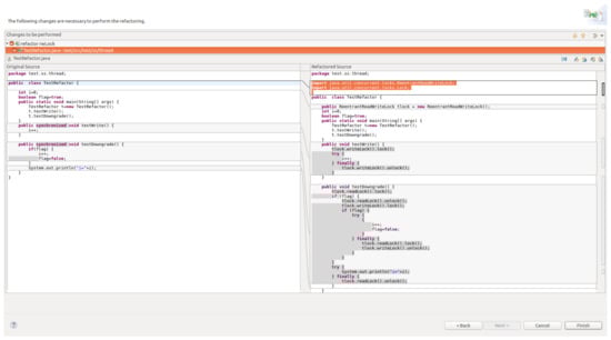 For the software refactoring tools, Dig et al. probed into concurrent refactoring. They proposed a software parallelization refactoring tool, CONCURRENCER [21], which could refactor serial Java codes into parallel Java codes. By refactoring a serial program into a re-entrant parallel program using the java.util.concurrent library, they converted a thread into a Fork/Join framework, converted int. into AtomicIntegers, and converted HashMaps into ConcurrentHashMaps, making data access thread-safe. Tip et al. focused on the validation of software correctness in the early stages of refactoring and designed a refactoring tool Reentrancer [22] to make programs reentrant by transforming a sequence program into a reentrant program.