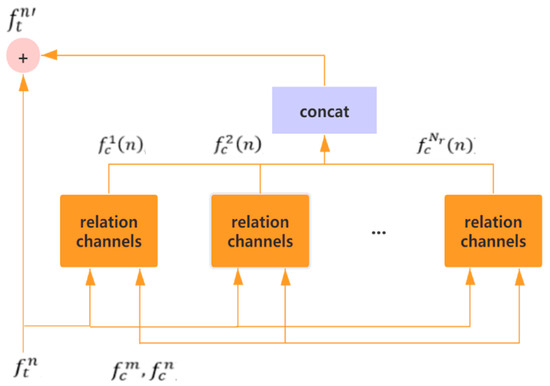 In the end, by the relation channel module, the feature which merges features of multiple channels can be gained by Equation (6).