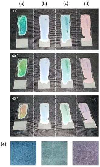 - Takeoka, Y.; Yoshioka, S.; Takano, A.; Arai, S.; Nueangnoraj, K.; Nishhara, H.; Teshima, M.; Ohtsuka, Y.; Seki, T. Production of colored pigments with amorphous arrays of black and white colloidal particles. Angew. Chem. 2013, 125, 7402–7406. [Google Scholar] [CrossRef]
