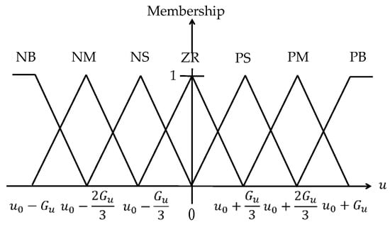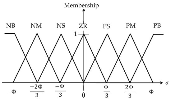 According to the output state of the system, we can set the following fuzzy rules shown in Table 3. NB, NM, NS, ZR, PS, PM, and PB are all labels of the fuzzy set, and the membership function of the input variable of the fuzzy sliding surface is shown in Figure 9, the membership function of the output variable of the fuzzy sliding surface is shown in Figure 10.