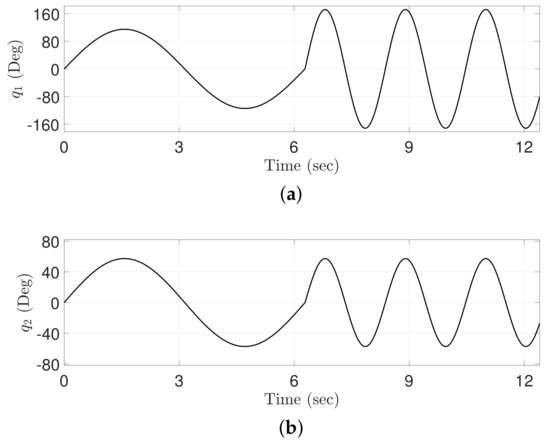 Trajectories of the reference angles: (a) Joint 1; (b) Joint 2.