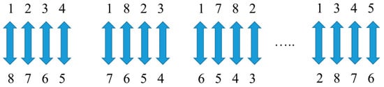 A nonrandom order is generated for a season to enable teams to have a match against each other. The LCA also does this task by making a single round-robin program in which only one match is held between two teams during a season. Consequently, when L teams are involved, L (L−1)/2 games are required. Figure 4 shows an example of a single round-robin scheduling algorithm. As is seen, it contains eight teams where in week 1, the match is between teams 1 and 8, teams 2 and 7, and so on. In the next week, the position of team 1 is fixed and other teams rotate clockwise. This process is repeated for the next weeks until the initial status is met. Remarkably, a dummy team is considered when L is odd so that it donates rest to its opponent team. This process is also carried out for all S seasons.