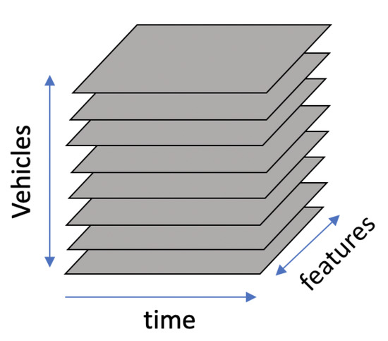 Since we will be using RNN-based models, representing data in the form of tensors is of particular interest. A tensor is defined as an N-dimensional array. It allows for an efficient way of representing multidimensional, complex data. For our particular purpose of vehicle predictive maintenance it will suffice to design 3-dimensional tensors which also can be visualized and understood more clearly [22]. The aim is to represent data in the sequential format, to be able to capture the history of each vehicle. Therefore, it is natural to think of one dimension as vehicles, the second dimension as time, and the third dimension as different features.