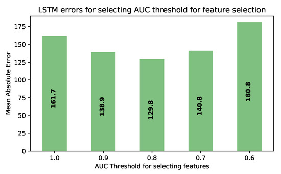 For training the LSTMs, in the tensor structure is 20, and comes from the selected threshold for Algorithm 1. The result of this experiment is shown in Figure 7, which indicates threshold of 0.8 as the best choice—which leads to 355 features.