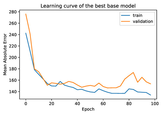 In order to better visualise the training process of base models in comparison to the meta model, Figure 10 and Figure 11 depict the best base model and meta model learning curve, respectively.