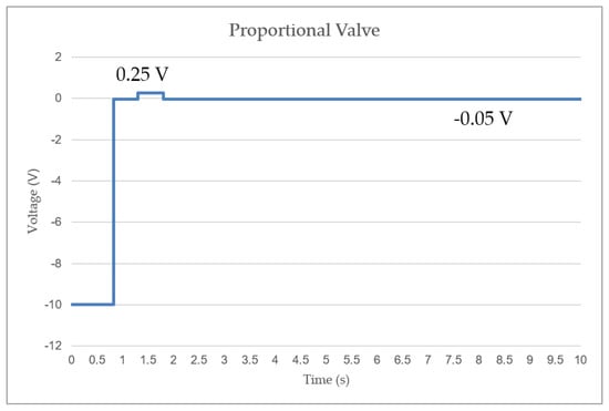 Figure 4 indicates how the servo proportional valve acts in the experiment. The servo proportional valve is set to fully open in the initial from node P to B (see Figure 1) by applying the voltage −10 V. Once the position of the hydraulic cylinder reached to the first target position, set the opening size to 0.5% (applied the voltage of −0.05 V). Next, switch the node P to A (applied the voltage of 0.25 V to the valve) in order to perform the pull-back motion.