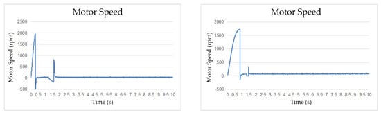Figure 7 shows the velocity control results under different experiment sets. It can be seen that the flow velocity holds around 50 mm/s for about 0.3 s, however, the velocity in Figure 7b,c (Target velocity higher than 50 mm/s) case dropped almost immediately once it reached the target flow velocity. Additionally, the flow velocity rose up after the V–P transition in order to compensate for the effect on pressure due to the pull-pack motion, and then enter the steady-state. A similar effect occurs at the results of the motor speed (Figure 8), the speed reversed after the V–P transition, then leaped up to hold the target pressure.