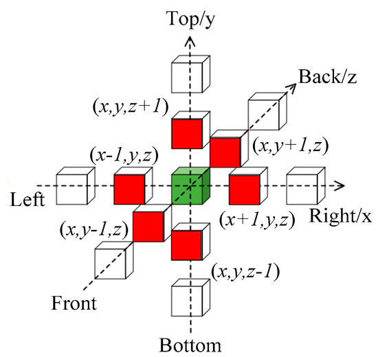 Data dependency in adjacent grids. There is a backward or forward dependence on the x-, y- and z-axes of the neighboring data.