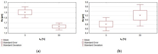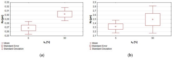 Statistical analysis of the (a) Ra and (b) Rz parameters after milling with a variable trochoidal step, str.