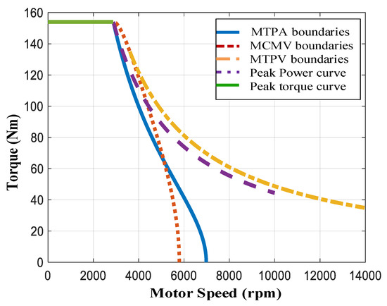- In the high-torque region of the weak magnetic field, the MCMV control is adopted to transit to the MTPV control range.