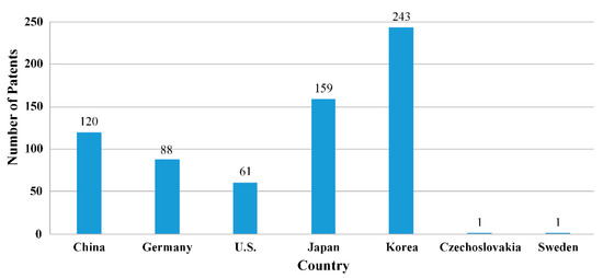 Comparison of some country’s share in publishing AT patent assignees. Note: the value on the bar graph represents the number of published AT patents in each country.