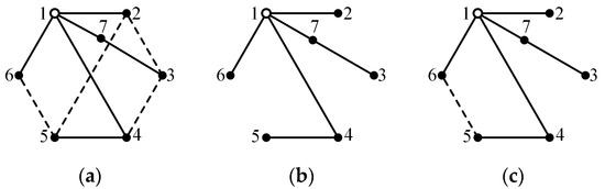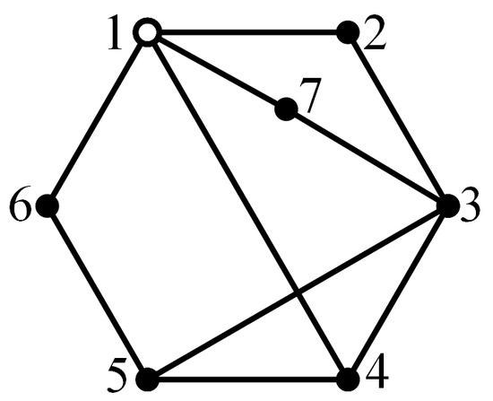 It meets the relationship obtained in Equation (6). The corresponding seven-vertex two-DOF DBG is shown in Figure 2b. By transforming the dash lines into solid lines, DBGs can be transformed into multiple joint topological graphs, which have been synthesized by Ding et al. [32]. In the present study, the multiple joint topological graphs are defined as the basic graphs of DBGs. Figure 2c illustrates the basic graph of the DBG shown in Figure 2b.