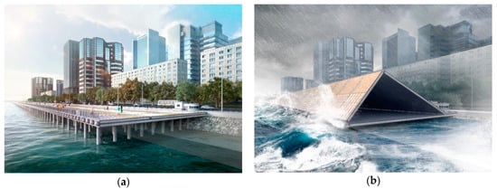 - Haeundae-gu Office. Feasibility Study and Master Plan Report for Storm Surge Risk Zone on Suyeong Bay; Haeundae-gu Office: Busan, Korea, 2016. (In Korean) [Google Scholar]