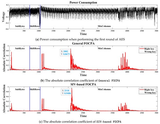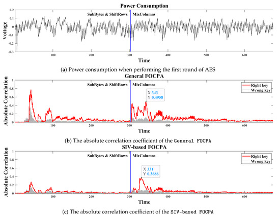 Figure 4 shows the results of the two versions of FOCPA. For the FOCPA of the MixColumns, the peak correlation of the General FOCPA is about 0.50, whereas the peak correlation of the SIV-based FOCPA is about 0.37. The peak correlation coefficients of the two versions of FOCPA are the same. Therefore, the SIV-related power consumption exists.