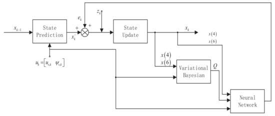 To the best of our knowledge, the VB-based adaptive filters are only used for online state estimation with unknown MNCM, and rarely used for the online state estimation with unknown process noise covariance matrix (PNCM). In [13], the online state estimation with inaccurate PNCM is treated, in which the prediction error covariance matrix rather than PNCM is approximated by the VB method. It cannot give the estimated value of the unknown PNCM. Besides, the authors of [21] experimentally show that the state estimation performance of the proposed adaptive filter in [13] may be worse than that of the traditional KF in some cases. In [22], a new adaptive KF algorithm is proposed to cope with the unknown PNCM for the linear discrete-time systems. The PNCM is estimated by the proposed algorithm based on the measurement sequence. In [23], an adaptive KF algorithm in presence of PNCM based on black box variational inference is proposed. The black box variational inference method is recently introduced to conduct the approximate Bayesian inference for the non-conjugate probabilistic model. They structured a posterior model of the system state and PNCM firstly, and then, the black box variational inference online inference for the posterior distribution of the PNCM is derived.