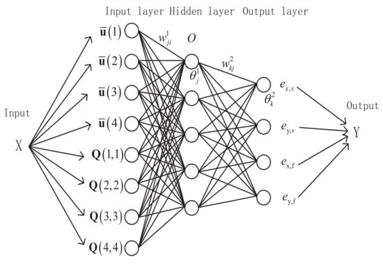 The neural network has been widely used in a lot of fields since it is a good tool for modeling complicated nonlinear systems [25]. The neural network structure used in this paper is a multi-inputs and multi-outputs nonlinear system, which is shown in Figure 6.