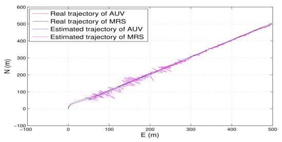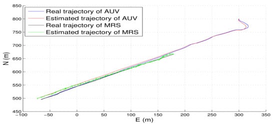 The experimental data came from the tests on a lake at the xinanjiang experimental field of the institute of acoustics, Chinese Academy of Sciences in December 2018. AUV- sensed the position of MRS by using the ultra short baseline (USBL) system. The detailed descriptions of the docking test are given in reference [24]. The Experimental results are shown in Figure 12.