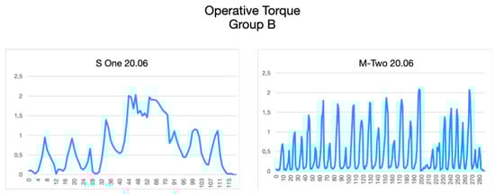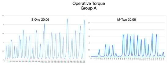 Table 3 indicates the range between the mean values of torque at failure and operative torque of the instruments for both groups. Regarding group A, the M-Two has a safer range compared to the S-One. Instead, comparing the instruments in group B, the M-Two range becomes even negative.