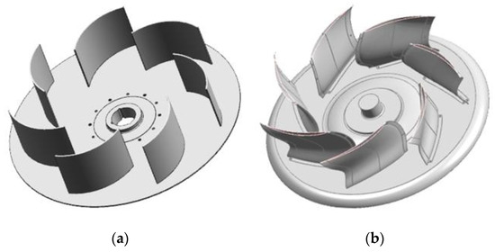 Geometric shape of the blades of the original and optimized models: (a) Original model; (b) Optimized model.