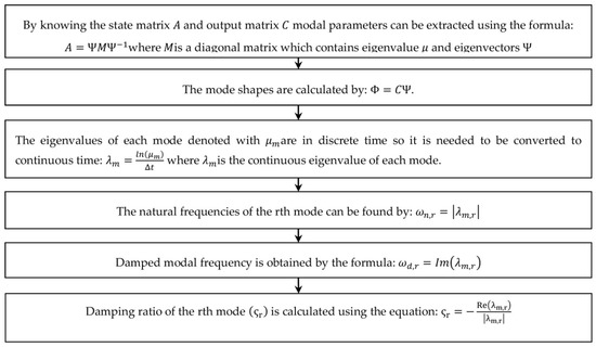 The methodology of calculating modal parameters from state-space parameters of subspace system identification algorithm is presented in Figure 3.