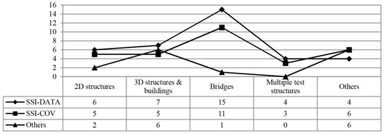 The distribution of the paper by the test structures and the applied subspace system identification methods.