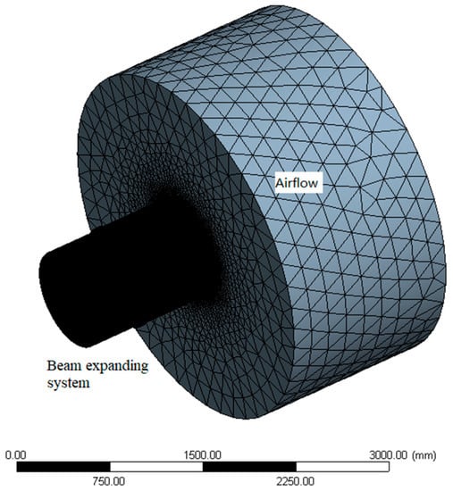 In such a simulation, the airflow is mainly used to observe the spread of airflow expelled after the beam expanding system. For the flow field simulation, we used Fluent (CFD calculation software) for calculations. For simulation purposes, we set the calculation parameters as shown in Table 2.