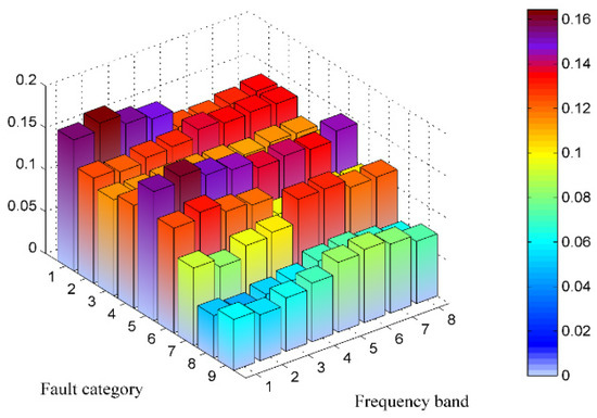 Feature extraction is a key step for many pattern recognition problems. In this paper, we used wavelet packet to extract features from the raw data sampled from the output node of the circuits. Part of the normalized fault features are shown in Figure 16. A total of eighty sets of data were gathered for each state. We randomly selected half of them as the training set, and the others as the testing set.