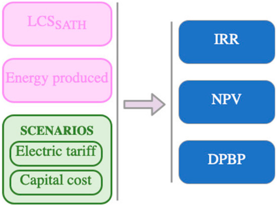 The economic feasibility of a farm developed using SATH® platforms depends on the results of the following economic parameters: IRR (Internal Rate of Return), Net Present Value (NPV), DPBP (Discounted Pay-Back Period) and Levelized Cost of Energy (LCOE). The method of calculation is explained in Figure 1.