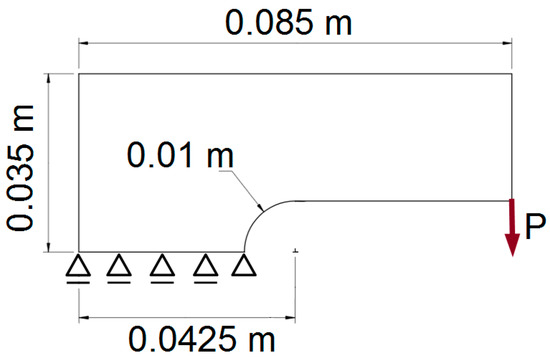 A knee-structure was chosen as the next example to illustrate the performance of a proposed methodology (Figure 27). The Young modulus and the Poisson ratio were E = 2 × 1011 Pa and ν = 0.3, respectively. A volume fraction equal to 0.5 was implemented, and force P = 1000 N.