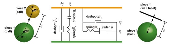 In Figure 4, and are the radii of contact particles. If one side of the contact is a wall, the corresponding radius will be infinite.