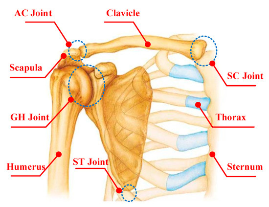 Anatomy of the shoulder complex (AC: acromioclavicular; SC: sternoclavicular; GH: glenohumeral; ST: scapulothoracic).