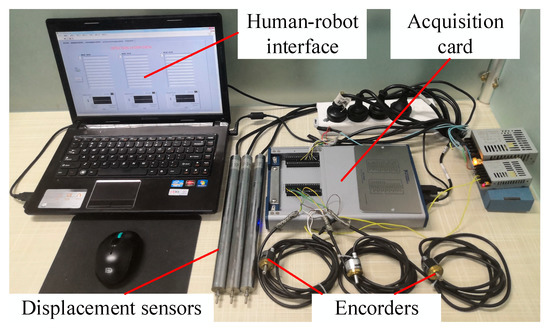 By connecting the displacement sensor, incremental angle encoder, acquisition card, power supply, and computer, the driver program of the detection system is downloaded. The overall acquisition system is integrated as shown in Figure 4.