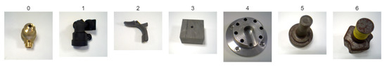 As stated before, the aim of this paper is to present a method to improve the accuracy on reduced datasets of texture-less objects. In order to prove that our method improves the score of the descriptors by their own, we have created a small dataset composed by seven different random industrial parts (Figure 5). We took 50 pictures of each industrial part taken from different viewpoints and different illumination conditions. Objects are rotated and translated but all images are free from occlusion, and with an empty and white background.