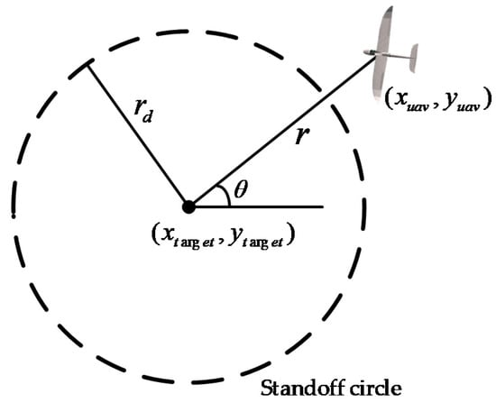 When the UAV searches for the ground target, the target can be detected via an onboard camera when the UAV is far away from the target. Therefore, in this paper, we focus on the situation where the UAV is out of the standoff circle when it receives the ‘tracking’ command.