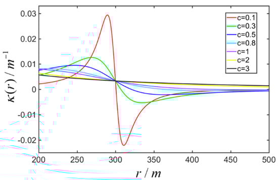 As shown in Figure 5, when is small enough, an extremum lies on the curve near to the desired radius. This extremum may conflict with the curvature constraint of the UAV, which will be discussed in the subsequent section.