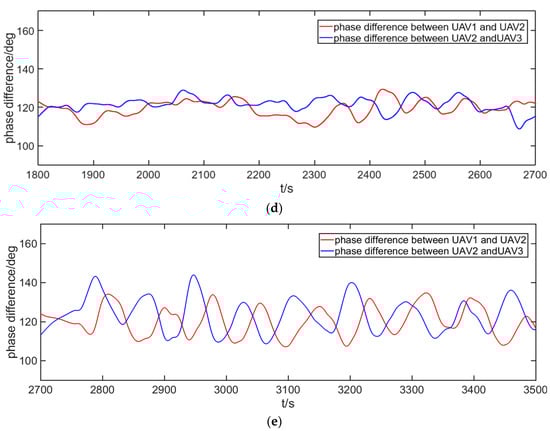 The phase difference. (a) Phase difference in the “gathering” stage; (b) Phase difference in the “phase adjusting” stage; (c) Phase difference in the “high-speed” stage; (d) Phase difference in the “low-speed” stage; (e) Phase difference in the “accelerating” stage.