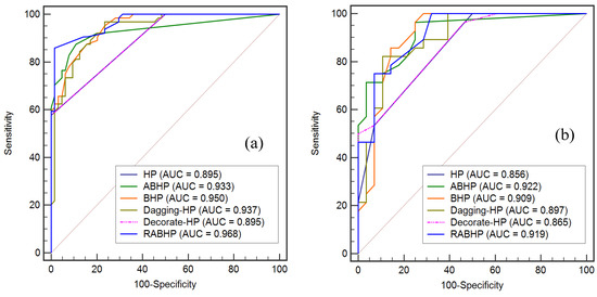 To evaluate the practicability of the six proposed models, they need to be tested with the unseen data (i.e., validation dataset), resulting in computing the prediction rate of the models. In the validation phase (Table 3), while the single HP and ensemble Decorate-HP models reached the maximum values of the PPV (92.86%) and SPF (88.24%) indices, the ensemble BHP model gained the maximum values of NPV (85.71%), SST (85.19%), ACC (83.93%), and Kappa (0.679). Many machine learning researchers have previously reported the asymmetric performances of different models when applied to the different training and validation datasets [24,96]. The most logical explanation for these different performances is that different methods were developed based upon different computational algorithms, and therefore show different performances dealing with different datasets. For example, Quinlan [97] suggested that the main reason for AdaBoost’s failure is overfitting. According to Breiman [75], Bagging perform the best if the base model is unstable.