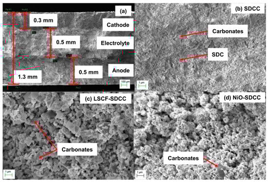 - Muhammed Ali, S.A.; Rosli, R.E.; Muchtar, A.; Sulong, A.B.; Somalu, M.R.; Majlan, E.H. Effect of sintering temperature on surface morphology and electrical properties of samarium-doped ceria carbonate for solid oxide fuel cells. Ceram. Int. 2015, 41, 1323–1332. [Google Scholar] [CrossRef]